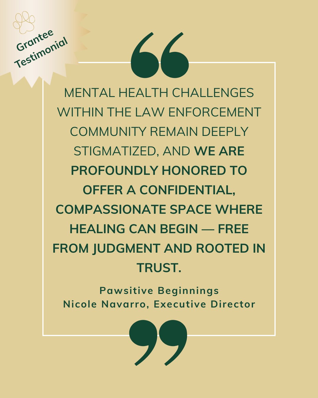 BACKGROUND: In celebration of The Human-Animal Alliance Healing Den’s one-year anniversary, funds were awarded to support the continued growth and success of its programming. Originally serving primarily at-risk youth and women navigating trauma, the Healing Den is now serving a new and vital demographic- first responders. These individuals encounter devastating situations on a frequent basis – typically, without access to trauma-informed mental health care necessary to process the emotional toll of their work. The Healing Den is a place where these heroes can receive compassionate, confidential, specialized support.